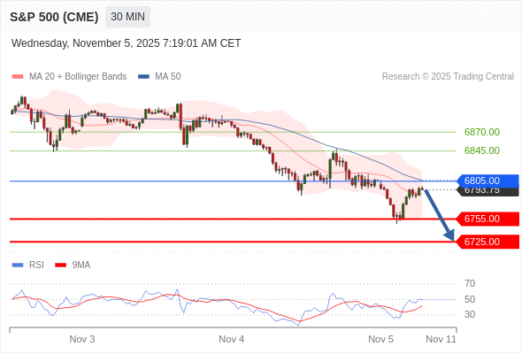 在 6805.00 之下,看跌,目标价位为 6755.00 ,然后为 6725.00 。