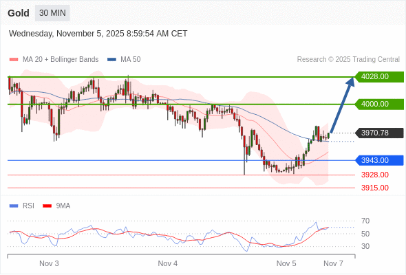 在 3943.00 之上,看涨,目标价位为 4000.00 ,然后为 4028.00 。