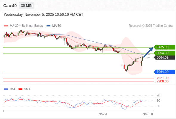 在 7964.00 之上,看涨,目标价位为 8094.00 ,然后为 8135.00 。