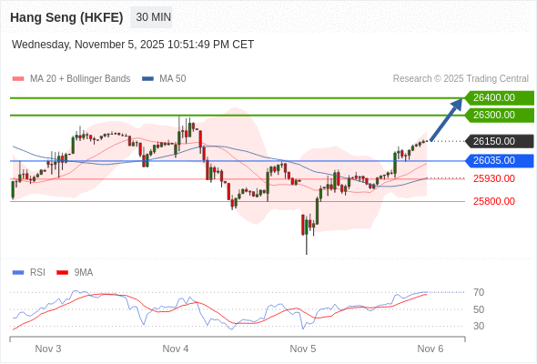 在 26035.00 之上,看涨,目标价位为 26300.00 ,然后为 26400.00 。