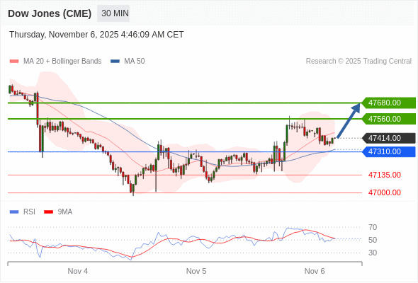 在 47310.00 之上,看涨,目标价位为 47560.00 ,然后为 47680.00 。