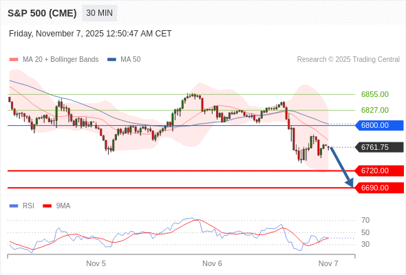 交易策略: 在 6800.00 之下,看跌,目标价位为 6720.00 ,然后为 6690.00 。
