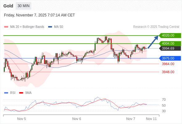 在 3975.00 之上,看涨,目标价位为 4004.00 ,然后为 4020.00 。
