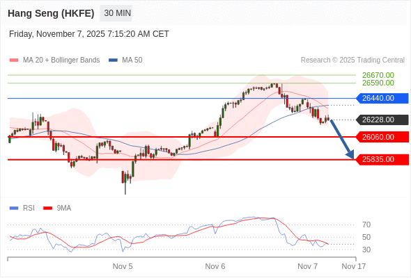 在 26440.00 之下,看跌,目标价位为 26060.00 ,然后为 25835.00 。