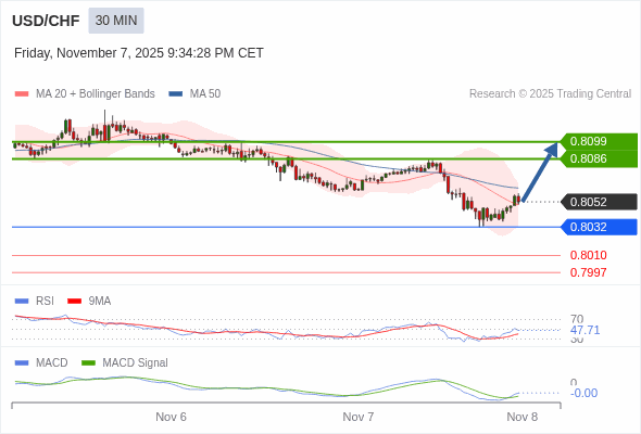 替代方案: 在0.8032以下,期待0.8010和0.7997。