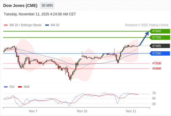 在 47290 之上,看涨,目标价位为 47700 ,然后为 47860 。