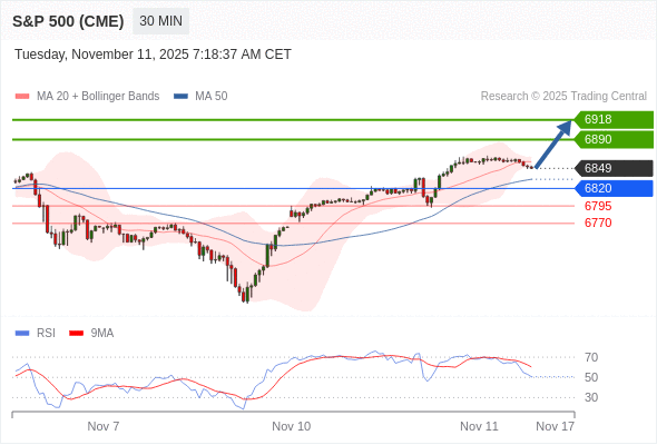 在 6820 之上,看涨,目标价位为 6890 ,然后为 6918 。