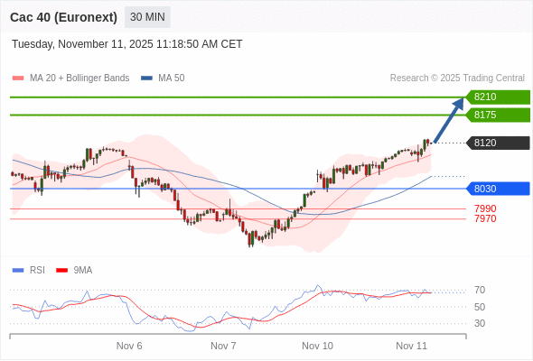 在 8030 之上,看涨,目标价位为 8175 ,然后为 8210 。