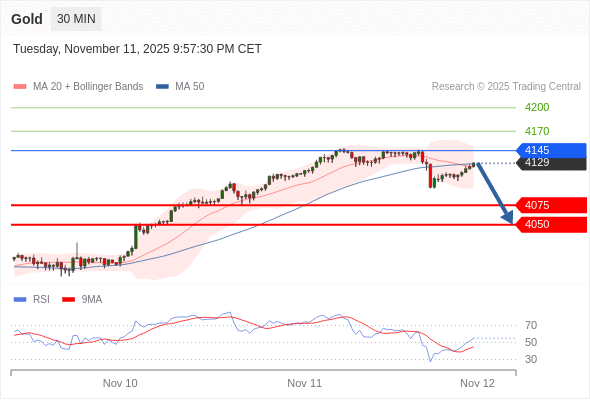 在 4145 之下,看跌,目标价位为 4075 ,然后为 4050 。