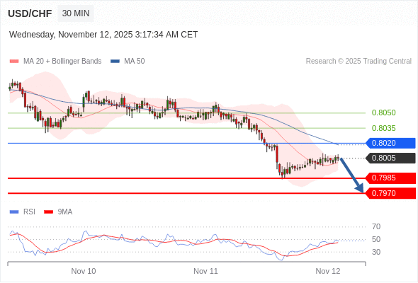 在 0.8020 之下,看跌,目标价位为 0.7985 ,然后为 0.7970 。