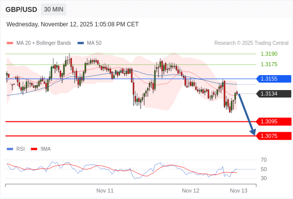 交易策略: 在 1.3180 之下,看跌,目标价位为 1.3095 ,然后为 1.3075 。