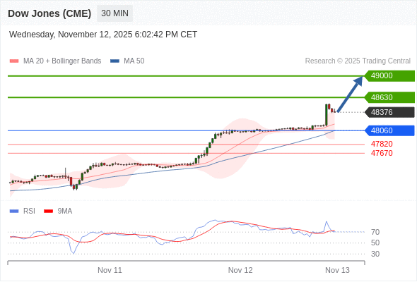 在 48060 之上,看涨,目标价位为 48630 ,然后为 49000 。