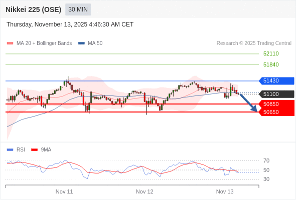 在 51430 之下,看跌,目标价位为 50850 ,然后为 50650 。