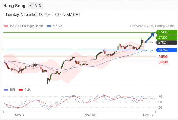 恒生指数 当日内: 期待27400。