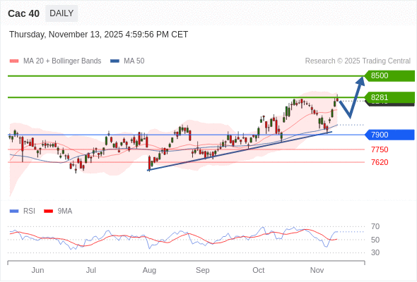 交易策略: 在 7900 之上,看涨,目标价位为 8281 ,然后为 8500 。