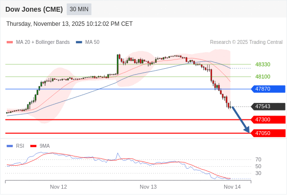 在 47870 之下,看跌,目标价位为 47300 ,然后为 47050 。
