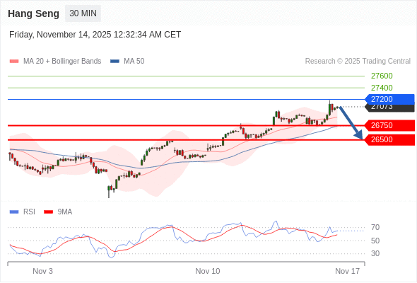 在 27200 之下,看跌,目标价位为 26750 ,然后为 26500 。