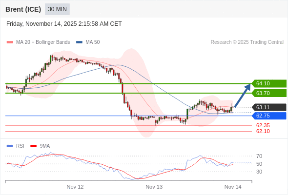 在 62.75 之上,看涨,目标价位为 63.70 ,然后为 64.10 。