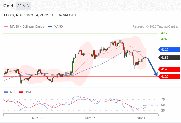 在 4210 之下,看跌,目标价位为 4145 ,然后为 4120 。