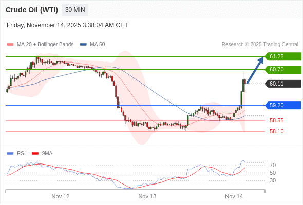在 59.20 之上,看涨,目标价位为 60.70 ,然后为 61.25 。