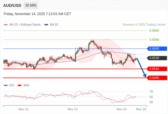 在 0.6560 之下,看跌,目标价位为 0.6515 ,然后为 0.6495 。