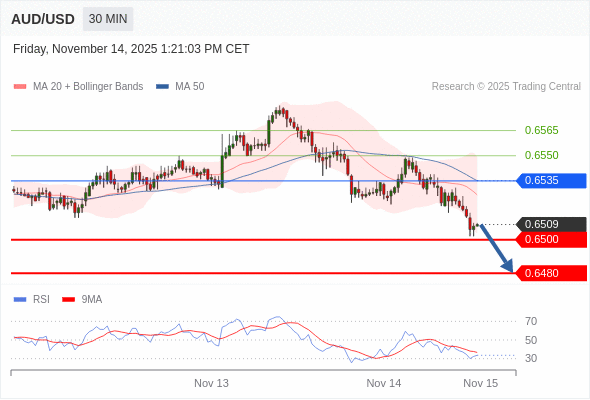 在 0.6535 之下,看跌,目标价位为 0.6500 ,然后为 0.6480 。