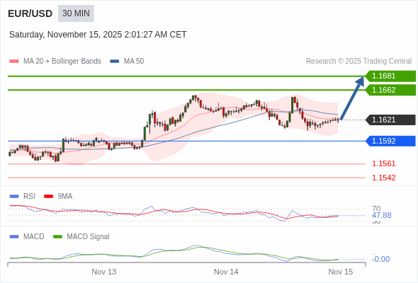 替代方案: 在1.1592以下,期待1.1561和1.1542。