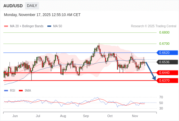 交易策略: 在 0.6620 之下,看跌,目标价位为 0.6440 ,然后为 0.6370 。