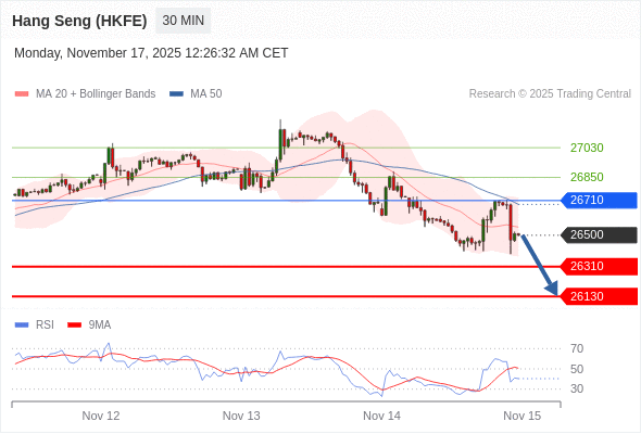 在 26710 之下,看跌,目标价位为 26310 ,然后为 26130 。