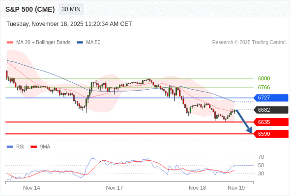 在 6727 之下,看跌,目标价位为 6635 ,然后为 6590 。