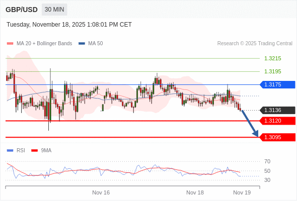 在 1.3175 之下,看跌,目标价位为 1.3120 ,然后为 1.3095 。