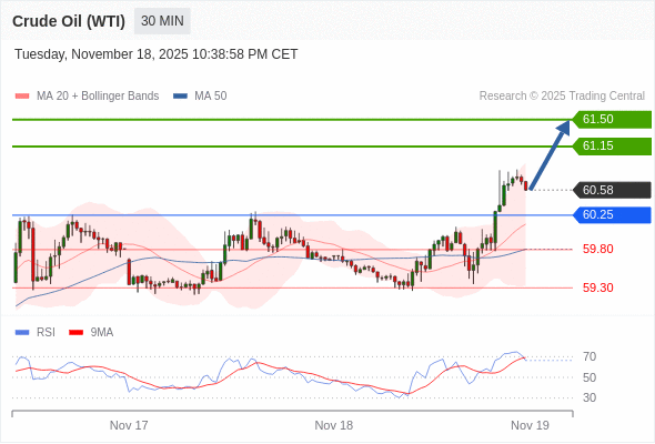 在 60.25 之上,看涨,目标价位为 61.15 ,然后为 61.50 。