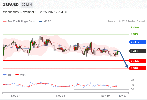 交易策略: 在 1.3170 之下,看跌,目标价位为 1.3120 ,然后为 1.3100 。
