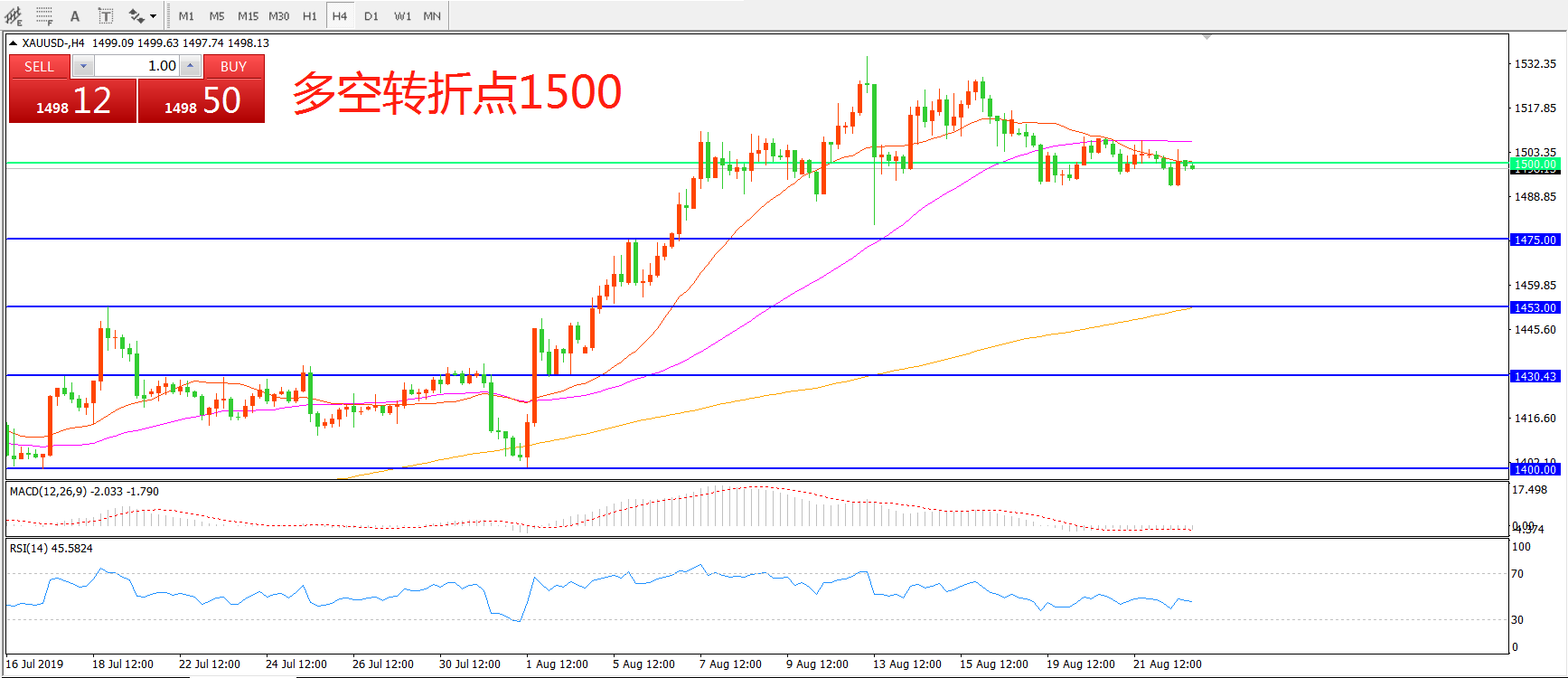 周四(8月22日),因投资者关注焦点集中在杰克逊霍尔央行年会方面,市场交投暂时保持谨慎,根据美联储会议纪要,有三位美联储官员反对进一步降息,美债收益率攀升,金价小幅下行,收报1497.95美元/盎司。投资者仍在等待美联储主席在杰克森霍尔研讨会上可能提供的进一步线索,但从目前看席鲍威尔的讲话可能不会如预期那么温和。