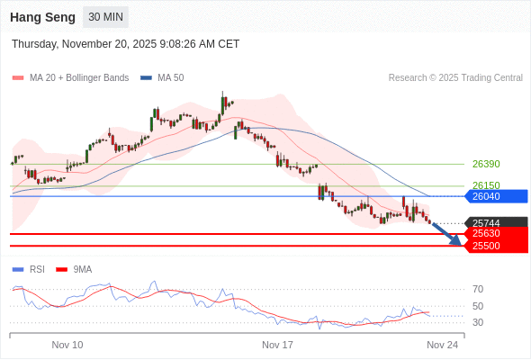 恒生指数 当日内: 下跌趋势。