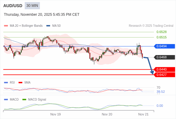 澳元/美元 当日内 : 看跌,当 0.6494 为阻力位。