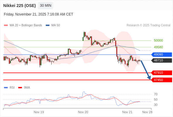 在 49090 之下,看跌,目标价位为 47910 ,然后为 47450 。
