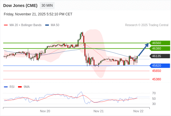 在 45820 之上,看涨,目标价位为 46380 ,然后为 46560 。