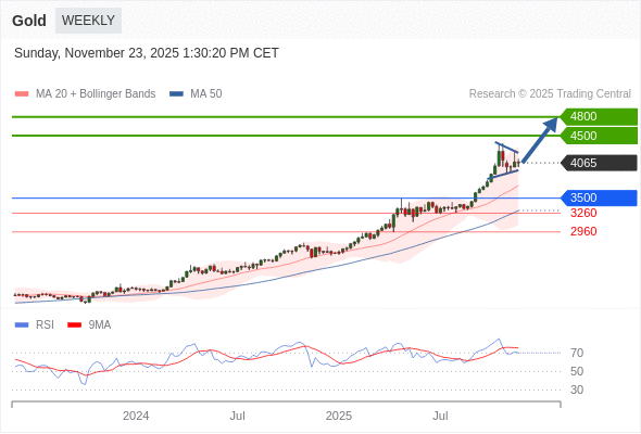 在 3500 之上,看涨,目标价位为 4500 ,然后为 4800 。