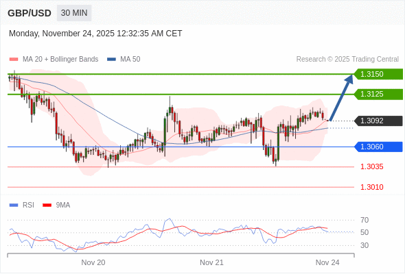 在 1.3060 之上,看涨,目标价位为 1.3125 ,然后为 1.3150 。