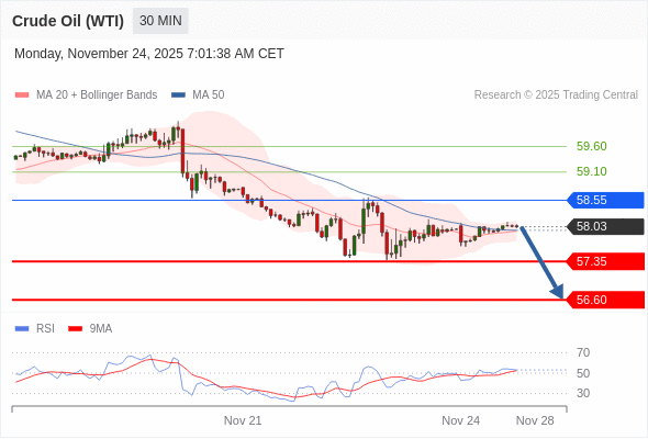 在 58.55 之下,看跌,目标价位为 57.35 ,然后为 56.60 。