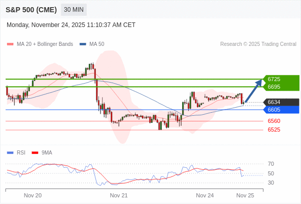 在 6605 之上,看涨,目标价位为 6695 ,然后为 6725 。