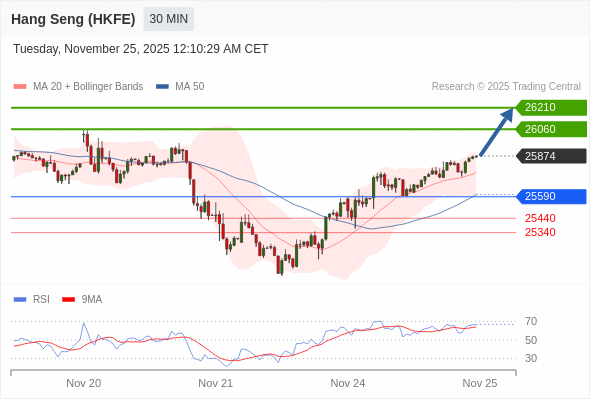 在 25590 之上,看涨,目标价位为 26060 ,然后为 26210 。