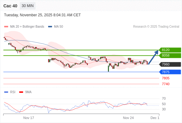 在 7875 之上,看涨,目标价位为 8058 ,然后为 8120 。