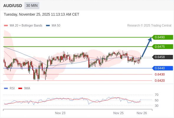 在 0.6440 之上,看涨,目标价位为 0.6475 ,然后为 0.6490 。