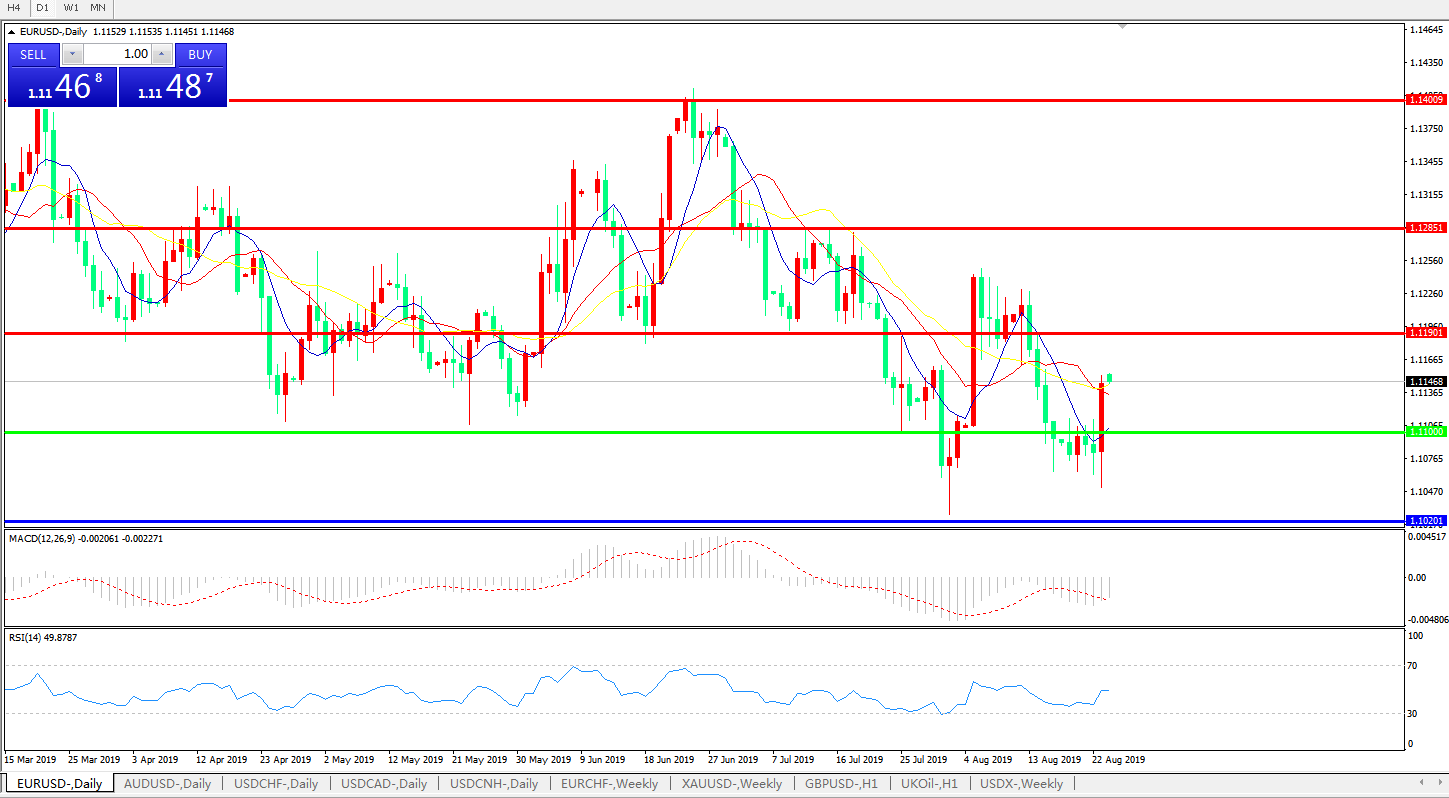 交易策略:1.1100上方看涨,目标1.1285、1.1400