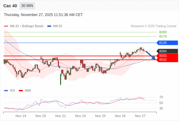 Cac 40 当日内: 短期关键阻力位在8135。