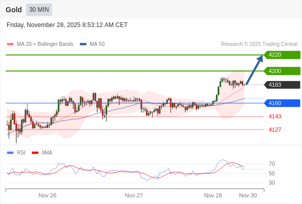 交易策略: 在 4160 之上,看涨,目标价位为 4200 ,然后为 4220 。