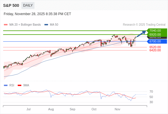 在 6700.00 之上,看涨,目标价位为 6920.00 ,然后为 7040.00 。