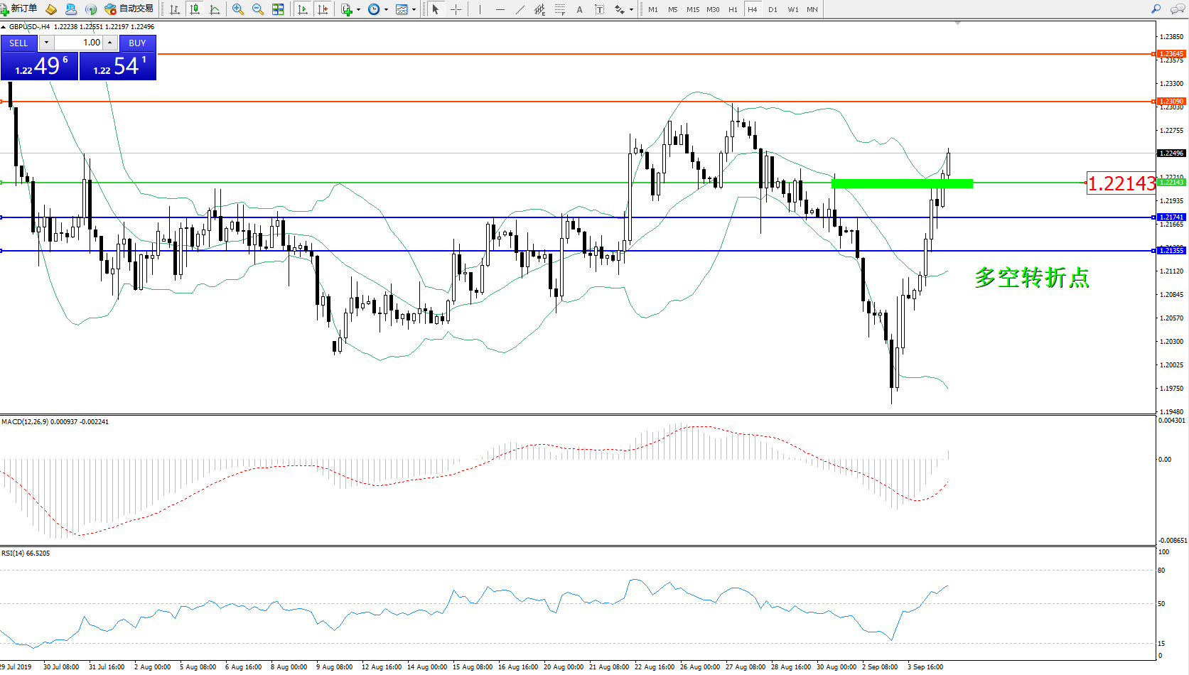 交易策略:1.22143上方看涨,目标1.23090、1.23645